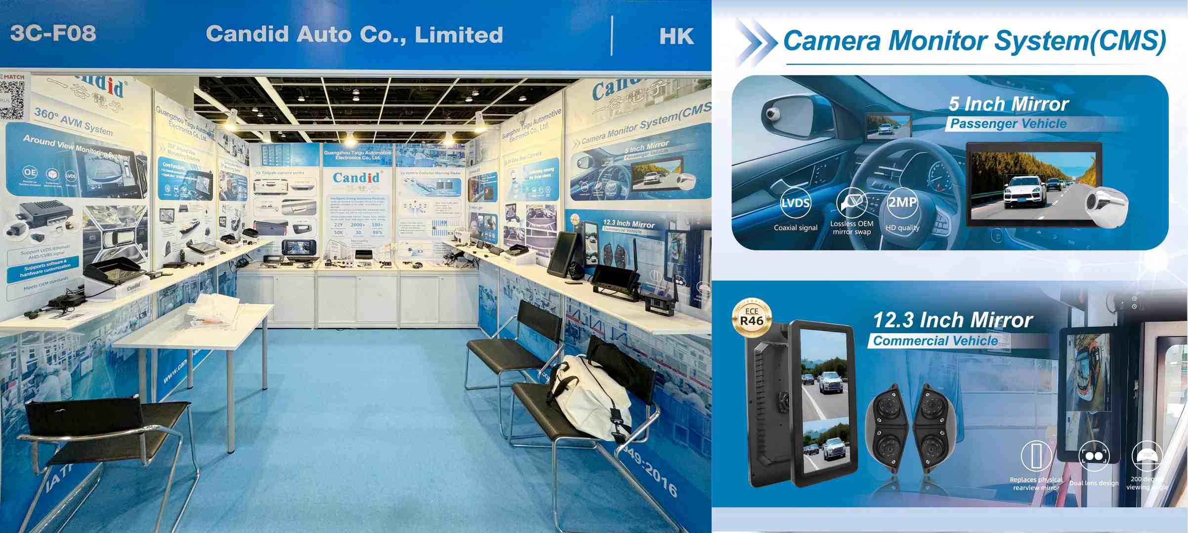 On 13 Oct, Candid brought its AI blind-spot monitoring solutions and launched the CMS smart e-mirror system featuring pedestrian and vehicle recognition; the system also supports customization.