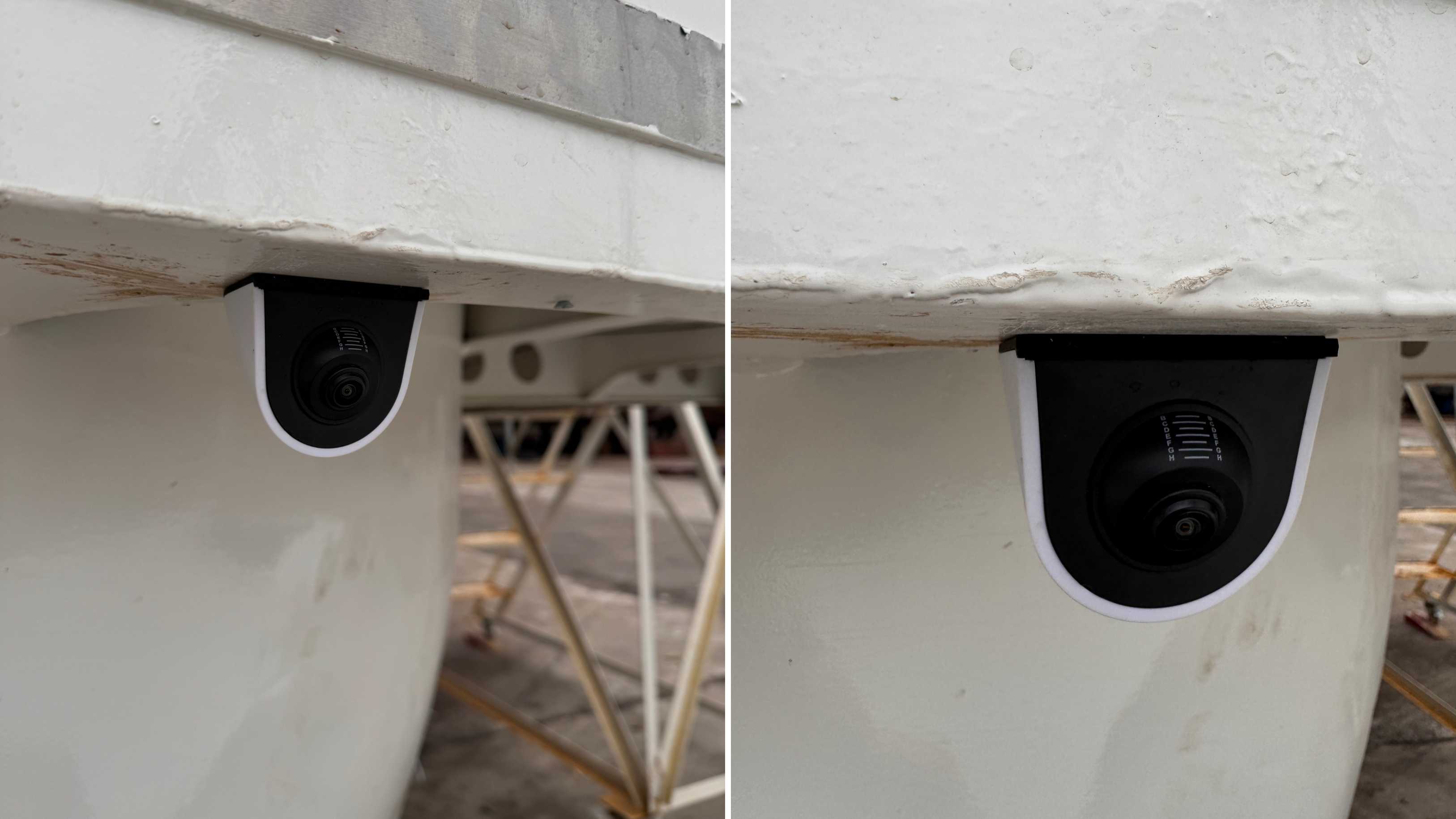 Six wide angle cameras now sit flush in the hull. The curved mounts keep calibration rock-solid.
